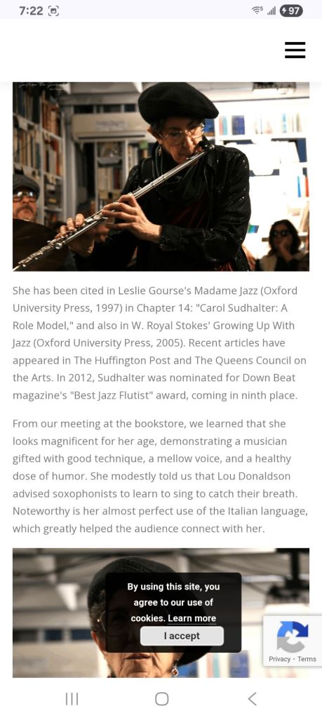 SATURDAY, DECEMBER 13 – 2 to 8 pm– International Women in Jazz special event, music, Carol (myself) being honored. St. Johns University., 101 Astor Place, NYC