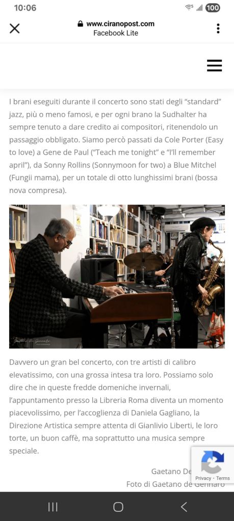 DOMENICA, 4 GENNAIO – 11 a.m.- Libreria Roma- pza Moro, 13, Bari – With Francesco Lomagistro (dms) and Vito Di Modugno (Hammond organ)